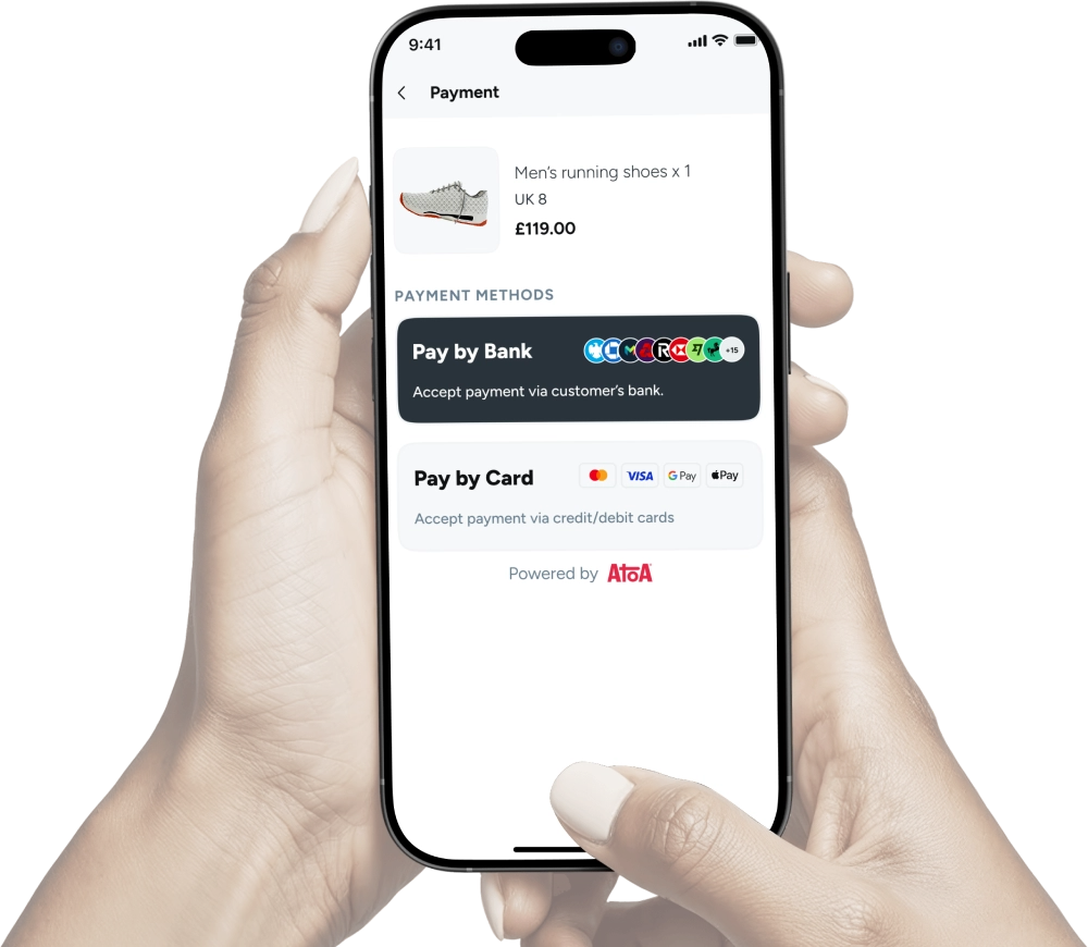 Atoa lets customers pay your business directly from their UK bank app. It’s fast, secure, and cheaper than accepting card payments.