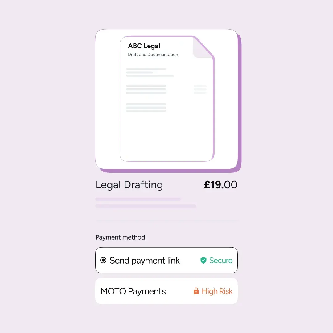 For law firms, this creates several immediate advantages. Fraud risk drops significantly because authentication happens between the client and their bank, not verbally through your office. Chargeback exposure reduces, since both payment types carry verifiable consent. Data handling is cleaner and PCI DSS compliance becomes easier to maintain. And the experience for clients is genuinely more professional, a secure, branded payment link feels considerably more considered than being asked to read out sixteen digits over a phone call.