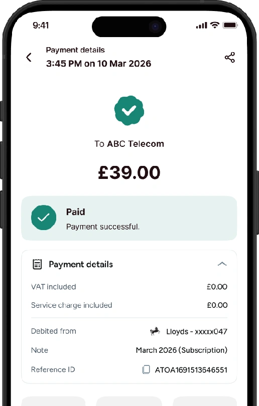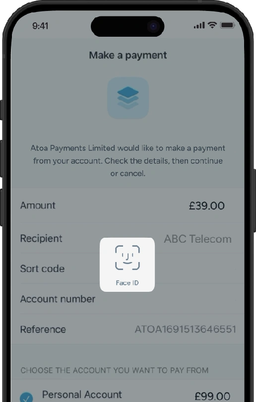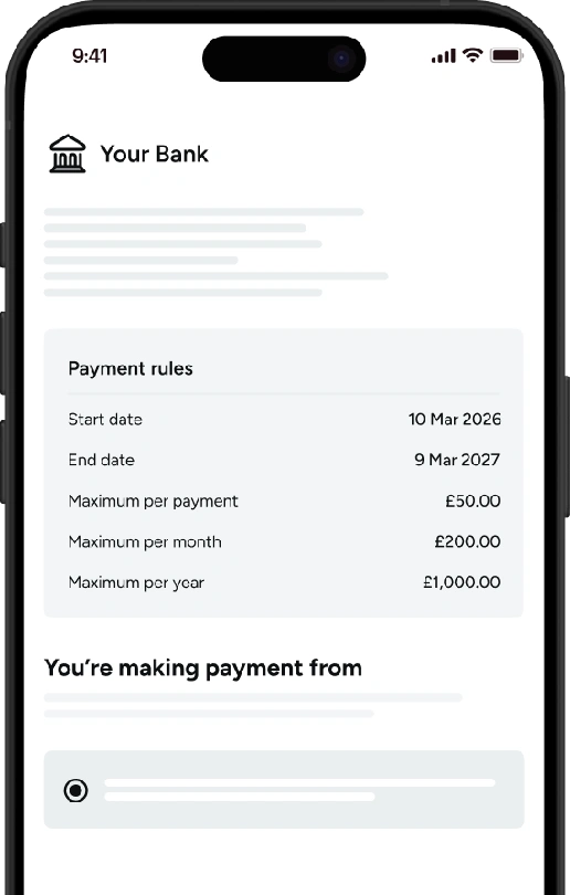 Customers approve the agreement directly through their bank using Strong Customer Authentication (e.g. Face ID or fingerprint), which is significantly more secure than traditional Direct Debit mandates that can be set up using just bank details.