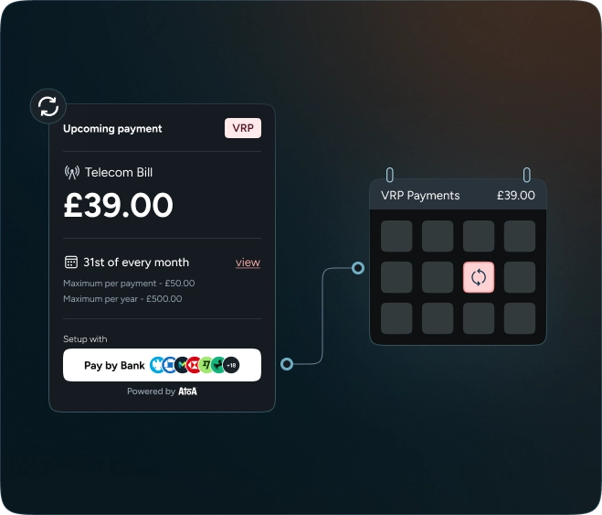 Customers with supported UK banks can pay via VRP. This includes major banks like HSBC, Barclays, Lloyds, NatWest, Monzo, Revolut, and Starling.